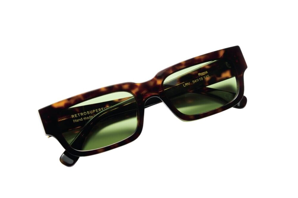 レンズ横幅54mmのワイドスクエア、太く厚いセル、グリーンのカラーレンズが、イタリアブランドである同ブランドらしい高いファッション性を実現。4万1700円(fRAMEディストリビューションTEL03-6356-8766)
