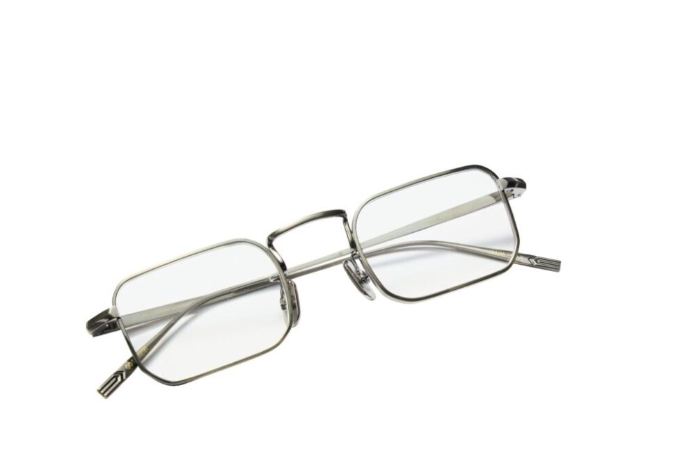 細身のスクエアシェイプは、90年代的ナード感を存分に湛えつつ、さりげなくモダナイズされ、現代らしいバランスを表現。バネ性のあるテンプルでかけやすさも段違い。4万700円(フォーナインズTEL03-5797-2249)