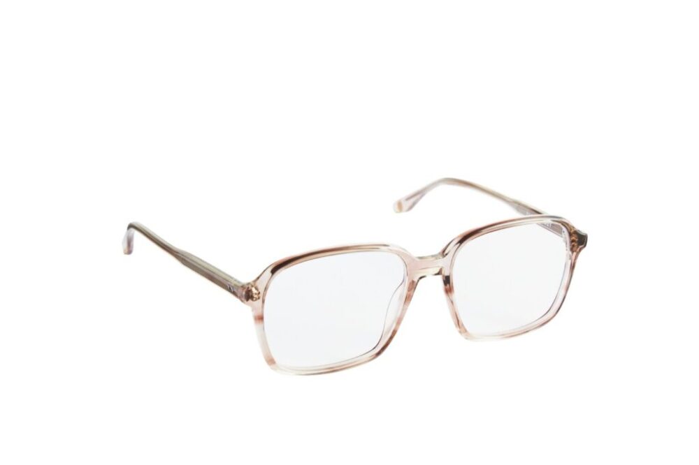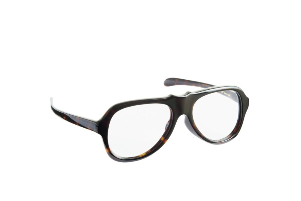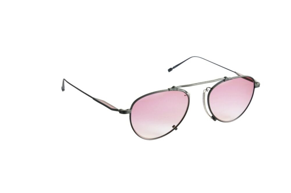 スクエアとティアドロップの中間のようなデザイン。品質に定評のあるマツケリ社のイタリア製アセテートを使ったフレームは、透け感のあるピンクカラーで、これからの季節にもぴったりだ。5万7200円(ブリンク ベースTEL03-3401-2835)