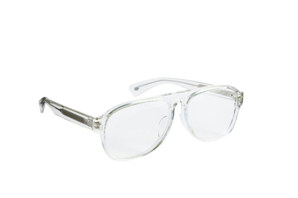 ブリッジがブロウ位置と並行になった“トップバー”スタイルの[ゼン]。ブリッジのカッティングがアクセント。クリアフレームなら、芯金の美しさも際立つ。4万7300円(アイヴァン 東京ギャラリーTEL03-3409-1972)