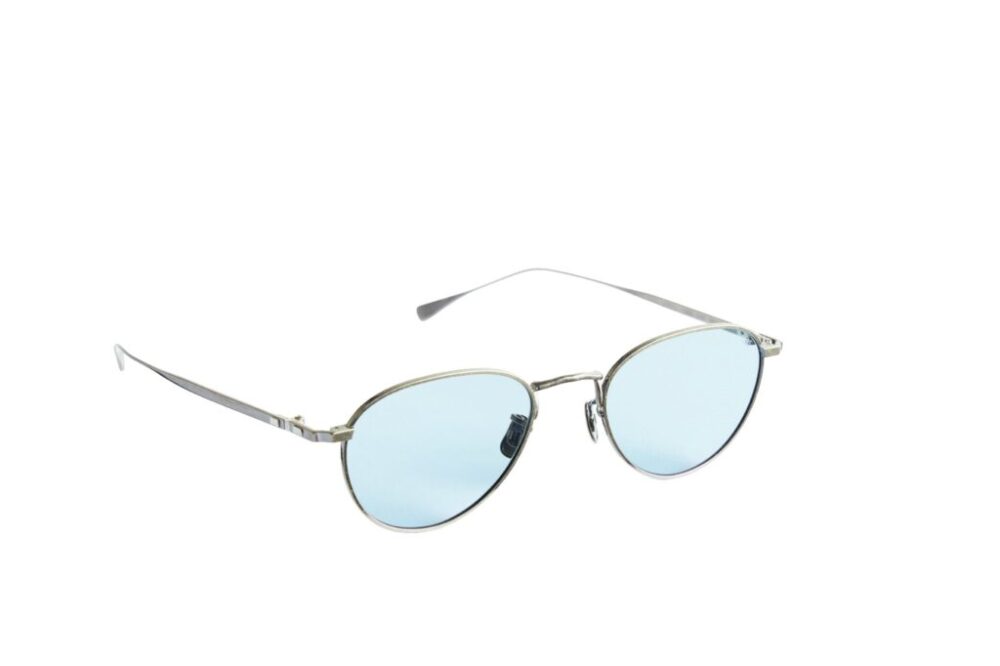 ナードなテイストは残しつつも上品にかけられるオールチタンのティアドロップ。爽やかなブルーレンズとヴィンテージ調フレームの組み合わせは絶品。7万4800円(アイヴァン 7285 トウキョウTEL03-3409-7285)