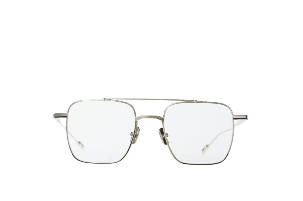 全体的にクラシックでありながら、オリジナルで開発されたネジ無しのヒンジ、リムと一体化したミニマルなノーズパッド、0.6mm厚のシートメタルから、モダンな印象を強く感じる1本。7万4800円(コンティニュエTEL03-3792-8978)