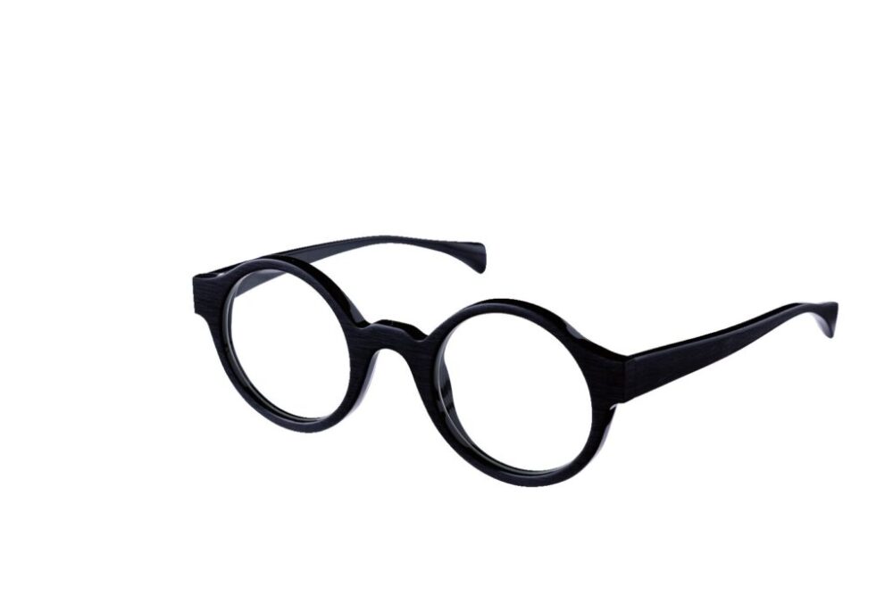 ラウンドシェイプのアセテートフレームは、ヘアラインマット仕上げが際立つミニマルデザイン。小ぶりなレンズサイズも良く、視力矯正度数の高いレンズでも歪みが少なく、幅広い方におすすめ。5万9400円(fRAMEディストリビュージョンTEL03-6356-8766)