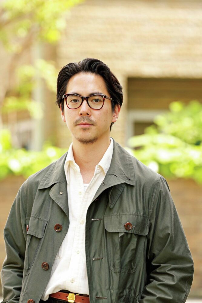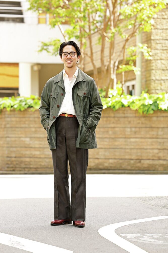 「若き日のゴダールがかけていた形で、やや大ぶりのレンズやべっ甲の表情にグッと来ました。別のメガネがタクシーの事故(!)で壊れてしまって、その修理のために訪ねたメガネ店でたまたま出会ったのですが、即決で購入しました。自分の中では“攻めたフレンチウェリントン”という位置付けで、目元で個性を出すのにうってつけの1本です」