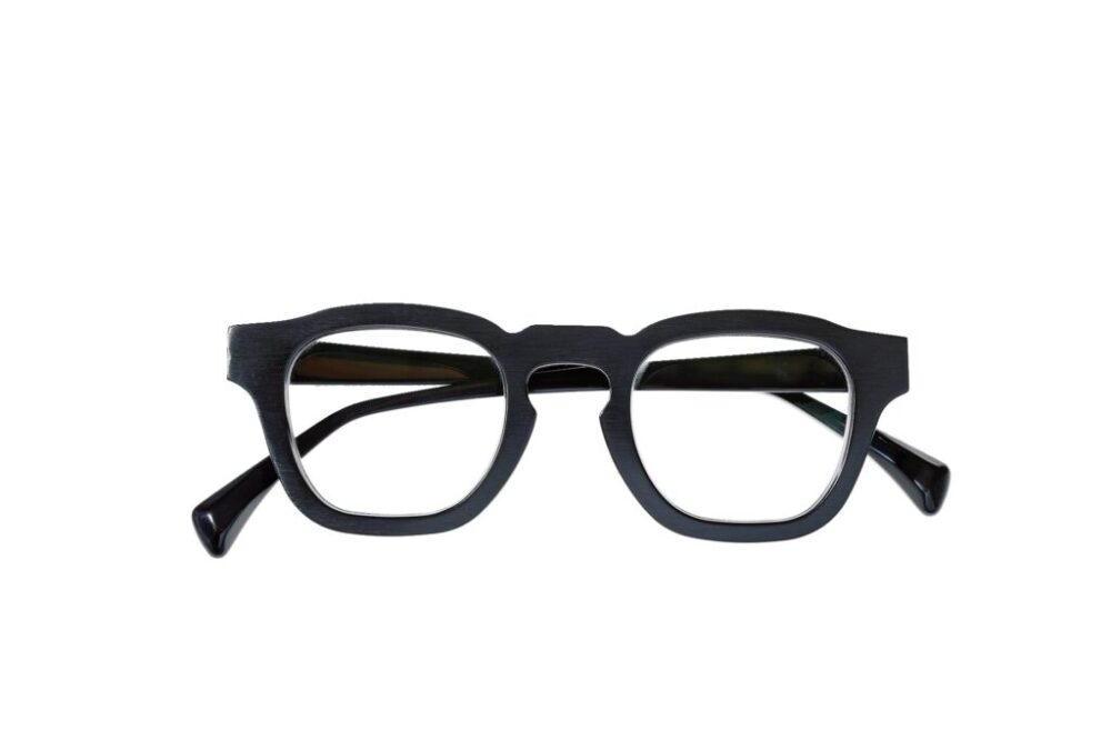 ベーシックなブラックのアセテートフレーム。“究極のシンプル”ともいえる無駄のないデザインは汎用性も抜群。艶のあるブラックではなくマットな表情で、目元に奥行きを生む。
