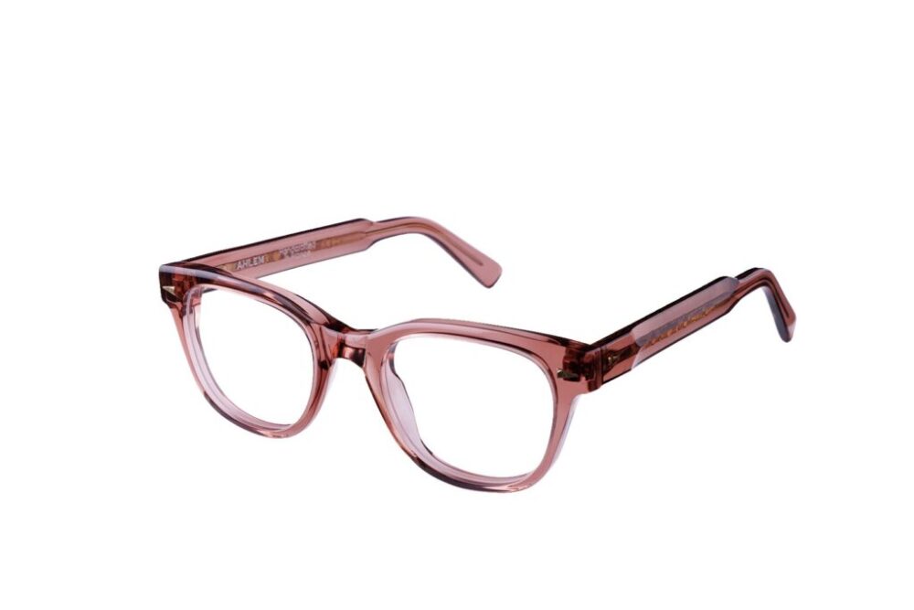 クリアフレーム越しに透ける繊細な模様をした芯金が美しい。「オールドファッションド ローズ」という、派手すぎずノスタルジックなピンク色は、程よく目元にアクセントを与える。7万1500円(グローブスペックス エージェントTEL03-5459-8326)