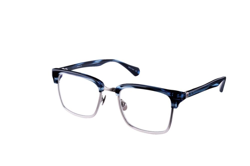 清潔感とゴージャスさのバランス感が絶妙な個性のブロウ。力強いブロウラインと太チタンリムが目元を際立たせ、エッジの効いたフォルムとヨロイに施された彫金のアクセントが目を引く。12万7600円(マツダアイウェアジャパン TEL 0776-43-9788)