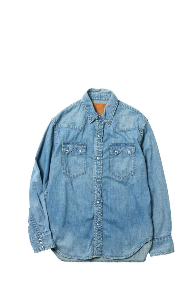 昨年10年ぶりに復活したデニムウエスタンシャツは、デザイナーの寺本欣児氏愛用の1着がソース。リジッドから育てれば愛着もひとしお。3万6300円(アナトミカ 東京TEL070-3144-0378)