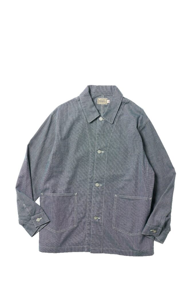刻印無しのドーナツボタンや、胸ポケットのない仕様は、40年代前後の簡素なデザインを再現。薄手で春も快適だ。3万1900円(フェローズTEL03-5725-9577)