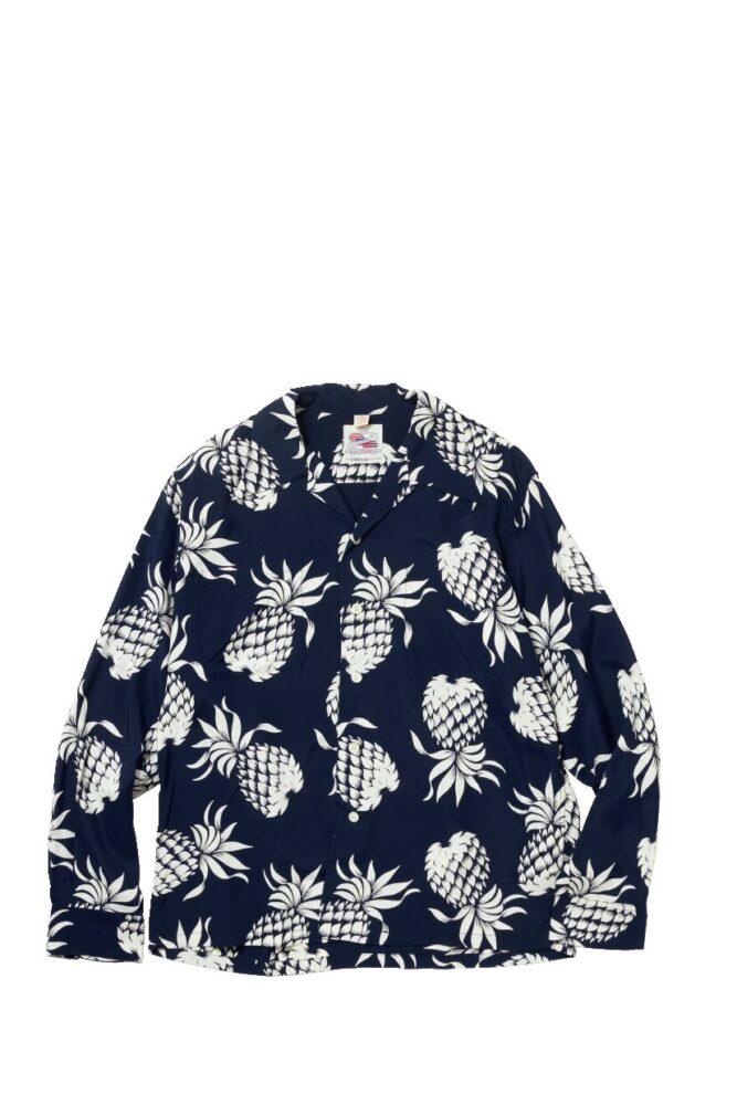 上品な印象の長袖仕様で、アロハシャツ初心者でも着用しやすい。柄もヴィンテージで非常に人気の高い“パイナップル”のデザインを採用。3万800円(東洋エンタープライズTEL03-3632-2321)