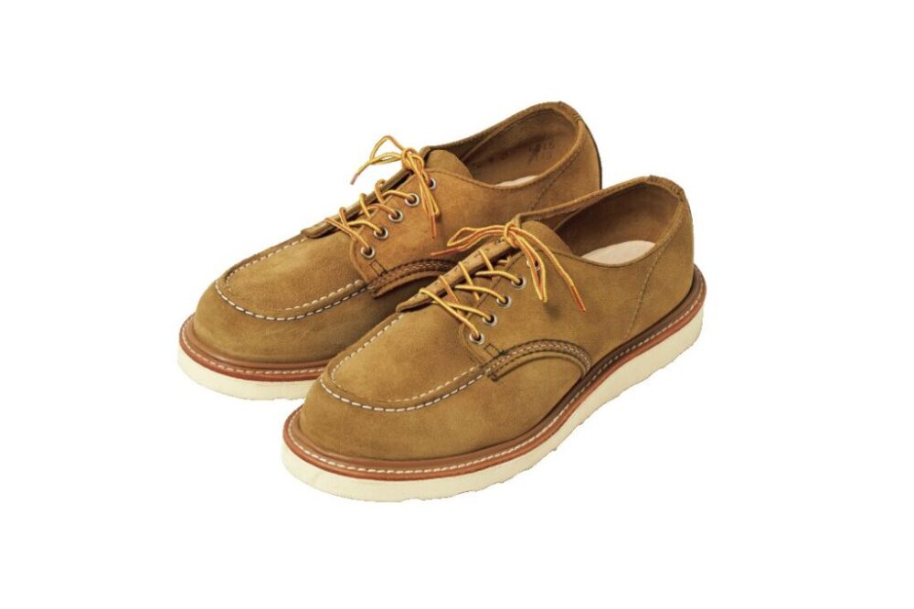 定番の[クラシックモック オックスフォード]をベースに、「レッドウィング」を代表するベージュ系レザーを複数使用した、贅沢なコラボレーション。7万7000円(エンジニアド ガーメンツTEL03-6419-1798)