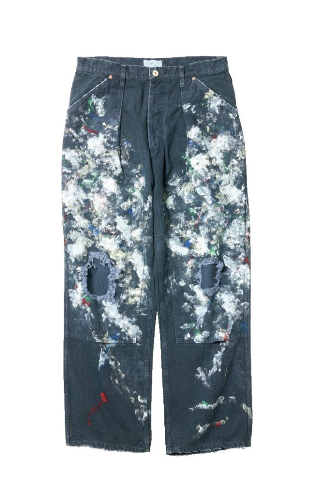 背面まで贅沢にペイント加工が施された存在感のある1本。生地はブラックダック。ゆったりとした腰回りからストンと落ちる美しいシルエットも秀逸。6万6000円(にしのやTEL03-6434-0983)