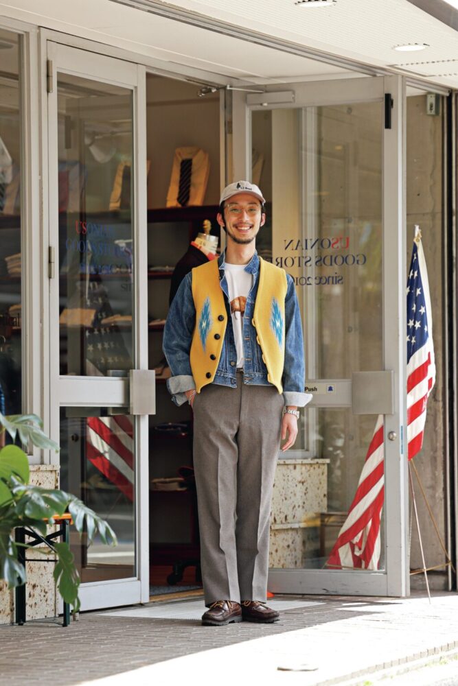 メイドインUSAの実力派ブランドのインポーターでもあるメイデンカンパニーの髙梨さん。多くのアメカジ名品を知る彼が選んだのは、ニューメキシコ州チマヨの伝統工芸品であるチマヨブランケットのベストだ