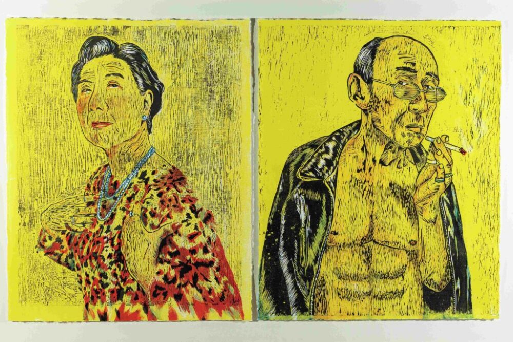 ──《生老美思》は、リトグラフと木版画の技法を使われているのも特徴です。