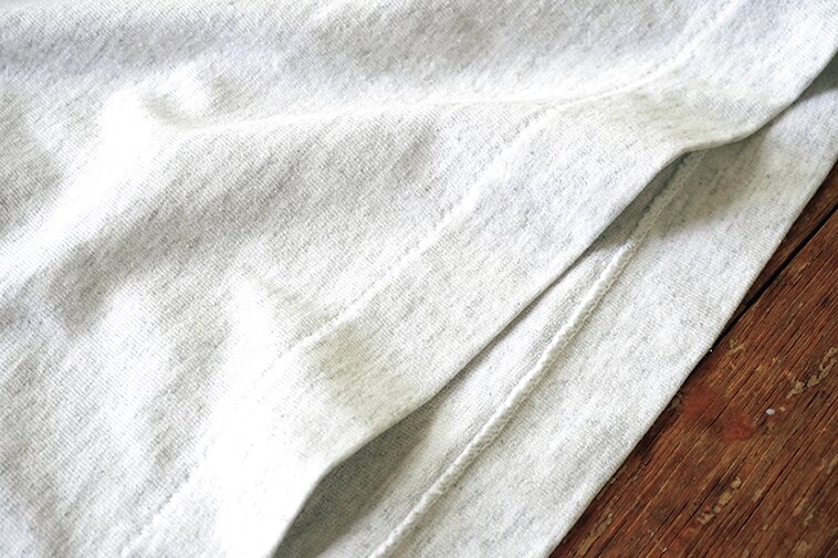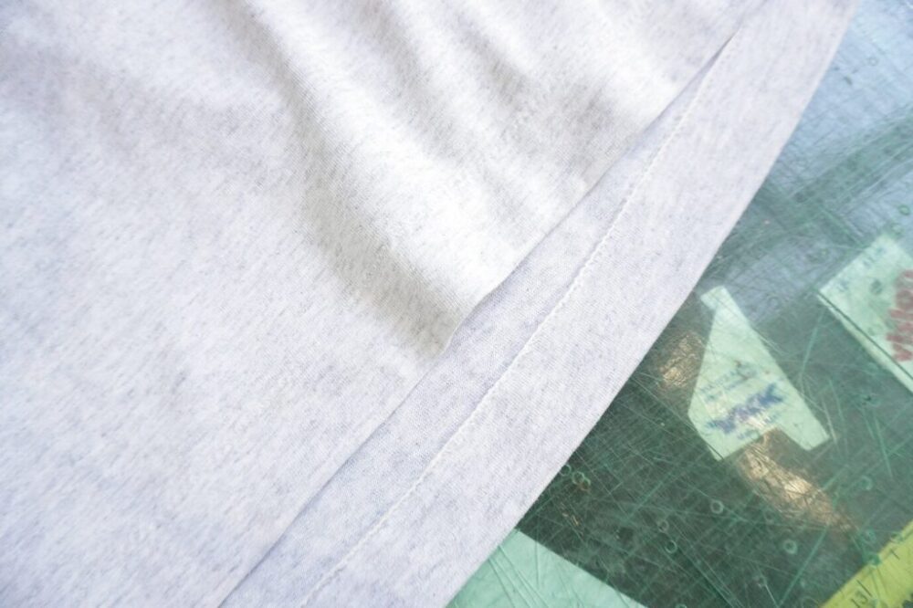 古着でよく耳にするシングルステッチのTシャツも、こだわればここまで忠実に裾上げが可能である。家庭用ミシンでは難しいため、こだわるならばプロに頼むのが吉。