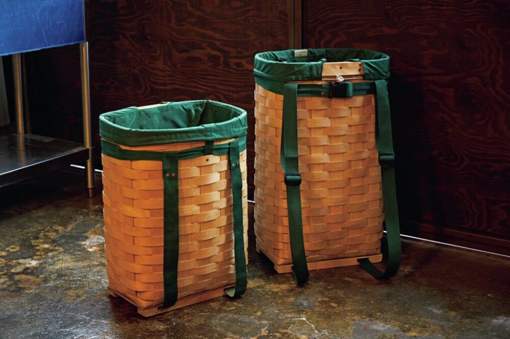 往年のヴィンテージフレームパックをはじめ、世界中のありとあらゆるバッグをコレクション。なかでもヴィンテージのボート・アンド・トート、さらにかご編みのアラガッシュ・パック・バスケットなど「エル・エル・ビーン」のそれらは、特にフェイバリットだと語ってくれた。