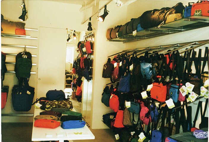 ストリート全盛の1997年、藤本さんらがデザインし、西海岸のオレンジカウンティのファクトリーが生産を手掛け、MADE IN U.S.A.にてスタートしたユニセックスバッグブランド「ラップス」。ブランド休止となる2000年代初頭頃まで多くのショップで展開され、当時、恵比寿に位置した旗艦店は本江さんらによって運営されていた。