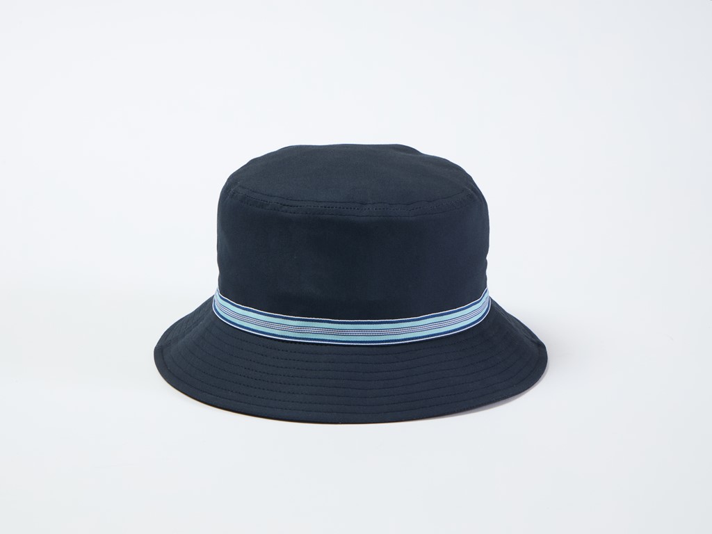 形状や素材は前回とまったく同じものを採用。“ド定番”ではないものの往年のアイビーらしさ全開な、バケット型のリボンハット。人によっては、このタイプの帽子を「アイビーハット」と呼ぶ人もいるようです。それほど、“らしさ”のあるアイテムでありながら、これがなかなか市場に出回っていない。企画した編集部本人も、たまに一部のお店で見かけてはいたもののバリエーションも少ないので、「これだ!」というものに出会えていませんでした。特に、リボンの配色ひとつで印象がガラリと変わるので、グッとくるリボンハット探しはなかなか難しい。