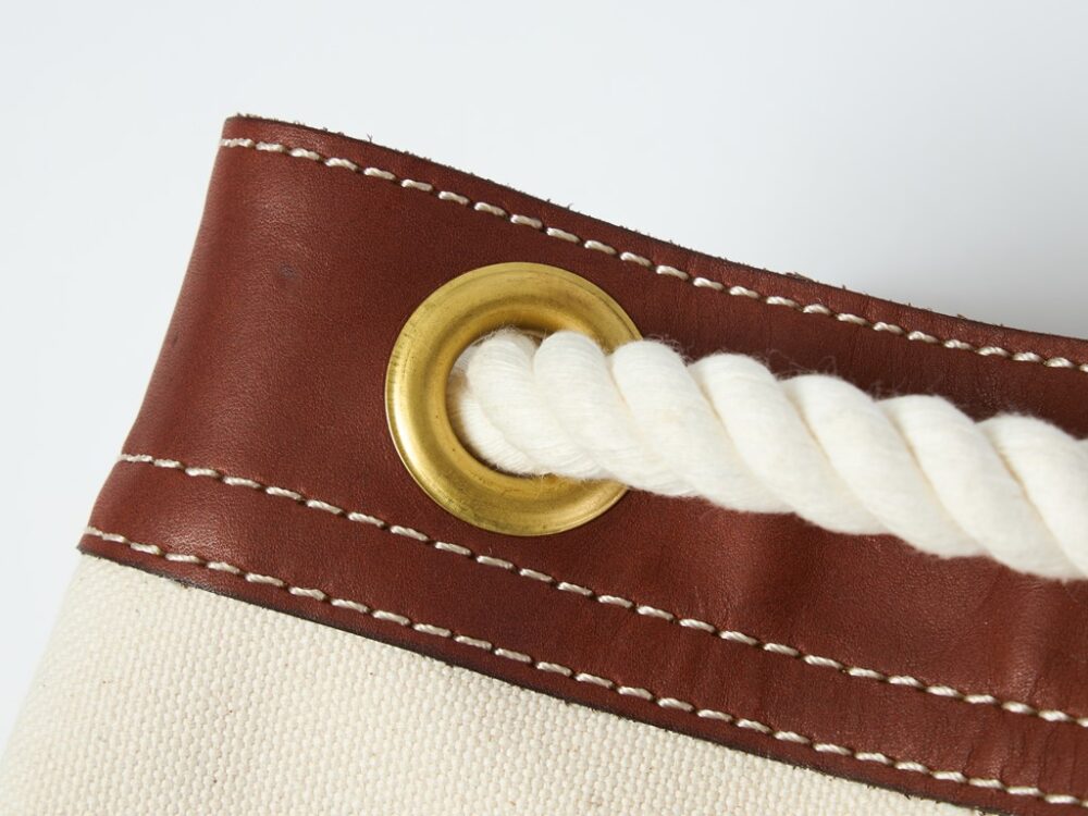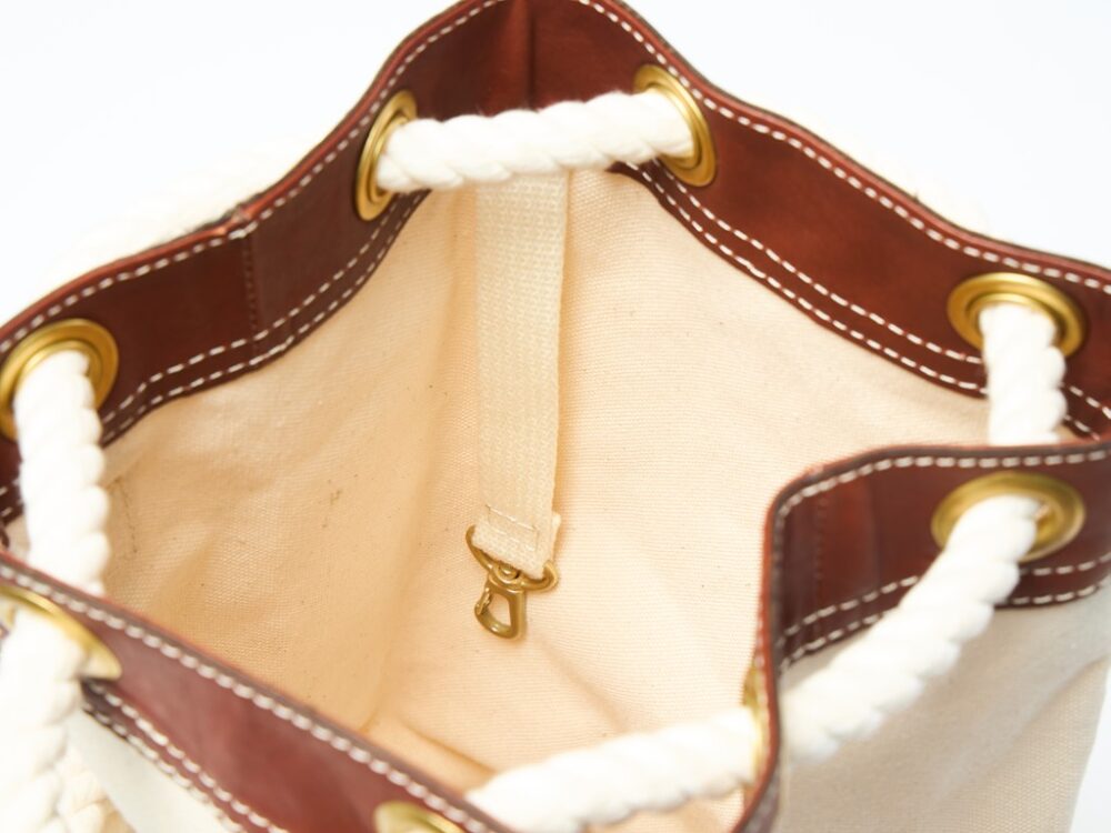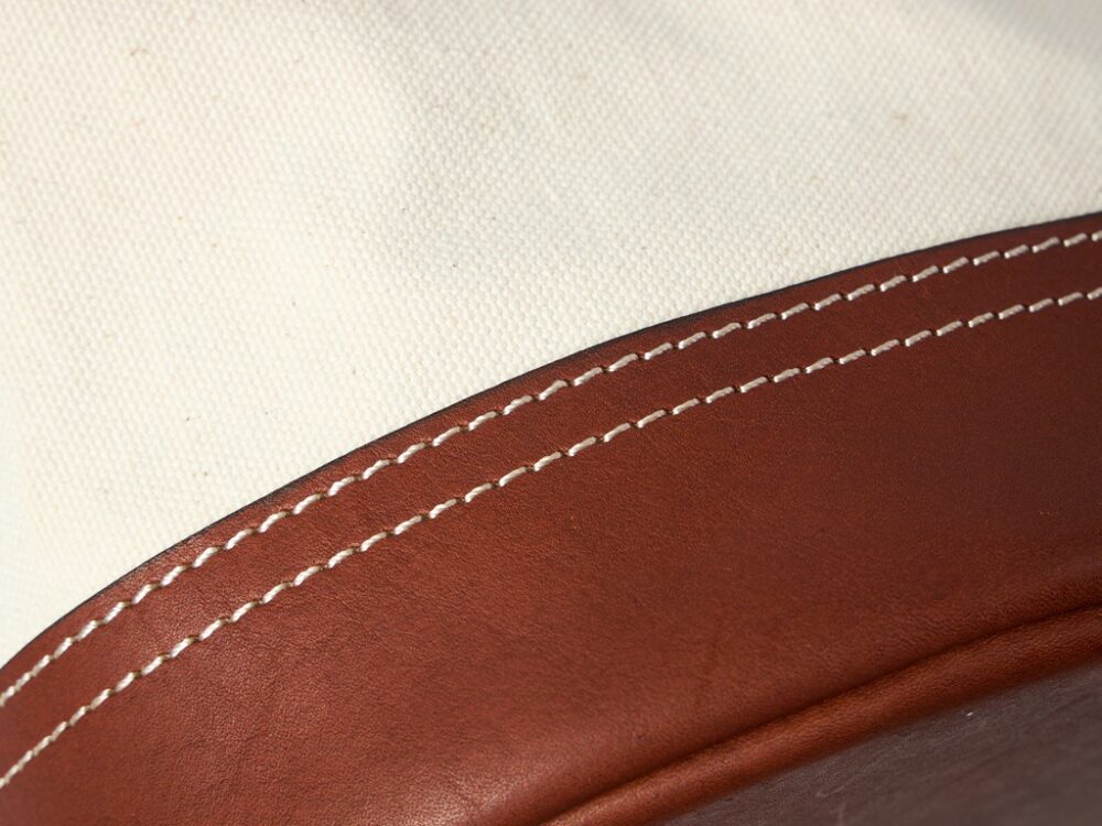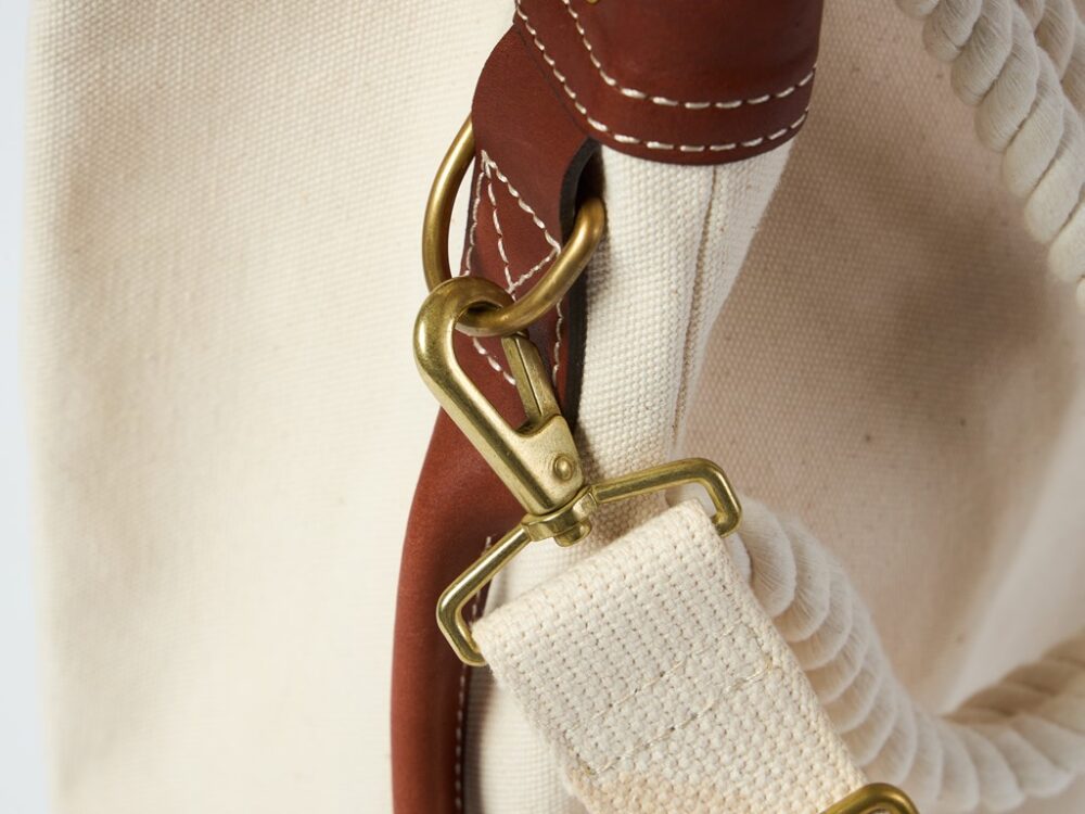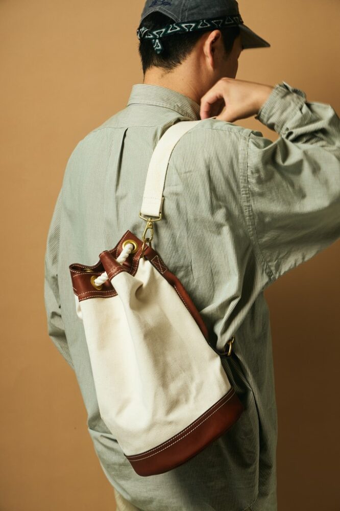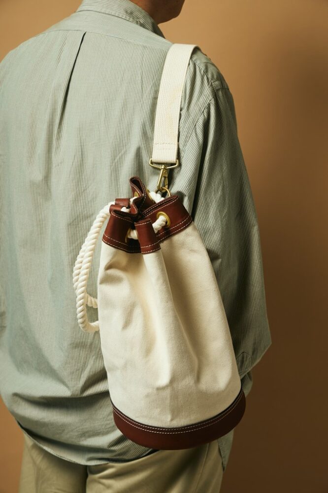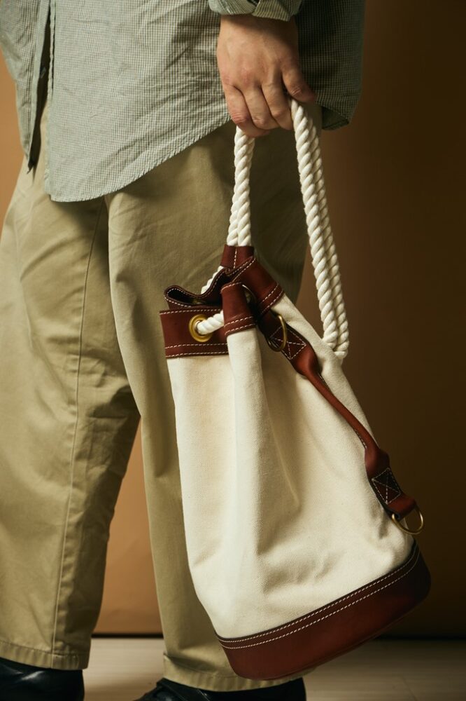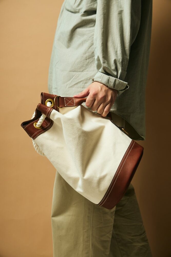 オリジナルはキャンバス地の2トーン仕様ですが、ただの復刻では面白みに欠ける。そこで今回は、白を基調とした6号帆布に、国産のフルベジタブルタンニン鞣しのカウレザーを組み合わせ、クラシックな雰囲気はそのままに、上品さとタフさを兼ね備えたバッグへとアップデートしました。