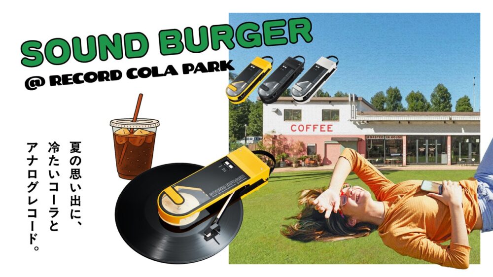 2025年7月19日(土)・20日(日)の2日間、南青山の複合施設「SHARE GREEN MINAMI AOYAMA」にて、アナログレコード試聴体験イベントを開催する。本イベントは、誰もが親しみのあるハンバーガーとコーラという定番の組み合わせにアナログレコードの魅力をかけ合わせた、五感で楽しめる新感覚イベントである。サウンドバーガーのネーミングの由来である“レコードを挟んで聴く”というスタイルが、ハンバーガーに似ているという発想から生まれた。
