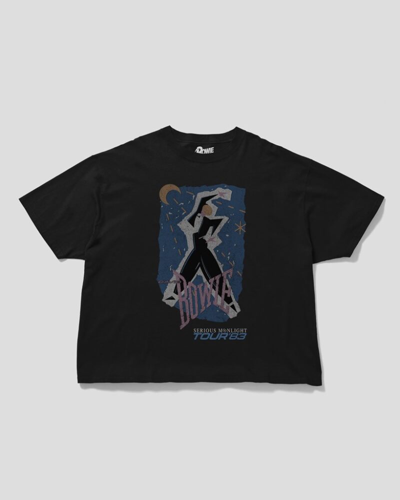 「キャサリン・ハムネット」の著名な顧客の中でも、その革新的なスタイルで世界中に影響を与えた伝説のアーティスト、デヴィット・ボウイ。彼が残した数々の作品やポートレートフォトのコラボレーションTシャツが発売される。すべてオーガニックコットン100%。