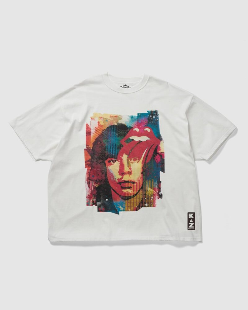 大阪を拠点に活動するアーティストカズ・オオモリが、『THE ROLLING STONES』のミック・ジャガーをグラフィックアートに。Tシャツの素材はオーガニックコットンを使用。ポップアップストアでは特別にオリジナルのアート原画も展示販売予定。(¥440,000)