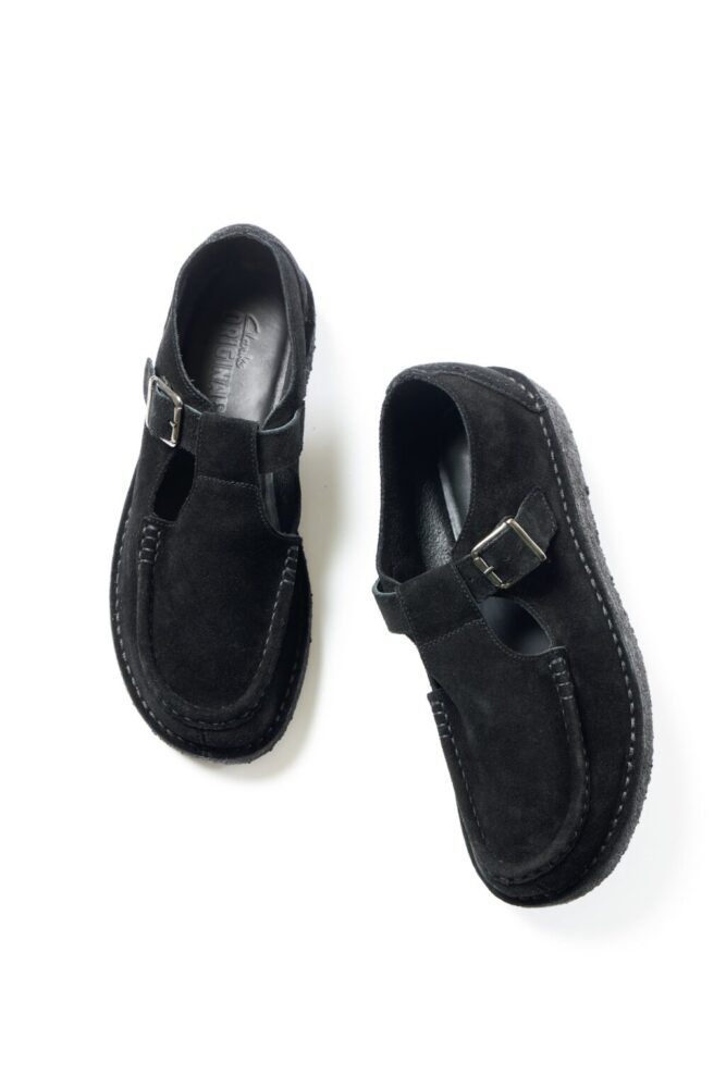 このほど見つけたのが、[クラークス]の「ノマドTバー」。ウィメンズの「ワラビーTバー」をメンズバージョンとして進化させたモデルです。ド定番のクレープソールに加えて、ワイドラストなので、程よいリラックス感も感じられる。カラーソックスでアクセントを加えることもできるから、履くのが楽しいのは間違いないし、レザーソールの本格革靴だとカッチリしすぎかな? という時に重宝するカジュアルな佇まい。