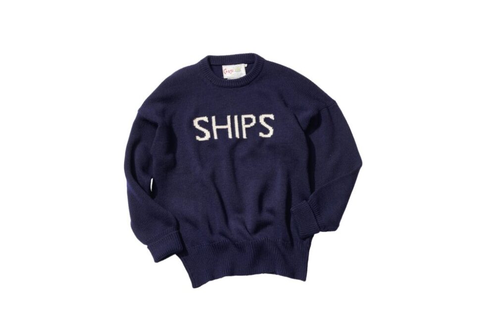 『シップス』で例を挙げるなら、『コーギー』と組んでリリースしたニットが代表的です。これには前段があります。79年に“SHPS”のロゴが入ったオリジナルスウェットをリリースしていて、80〜81年にかけて爆発的に売れていました。その資産を活かすという発想のもと、私たちならではのインポートアイテムを提案しようと考えたのです。つまり、発想の時代順としては“インポートアイテムをそのまま提案する時代”から“サイズスペック”を別注する時代〟と続いて、次に訪れたのが“他では手に入らないコラボレーションアイテムで差異を表現する時代”です。