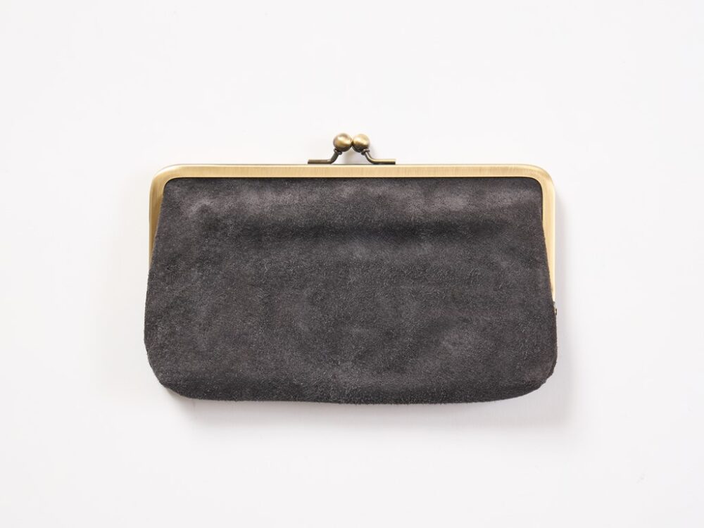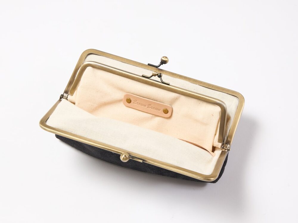 ボディには柔らかなピッグスウェードを採用しており、がま口の開閉がスムーズで、視認性も高く、奥にある小銭も容易を取り出せる。手に馴染む素材感が、使いやすさと上質さを両立している。
