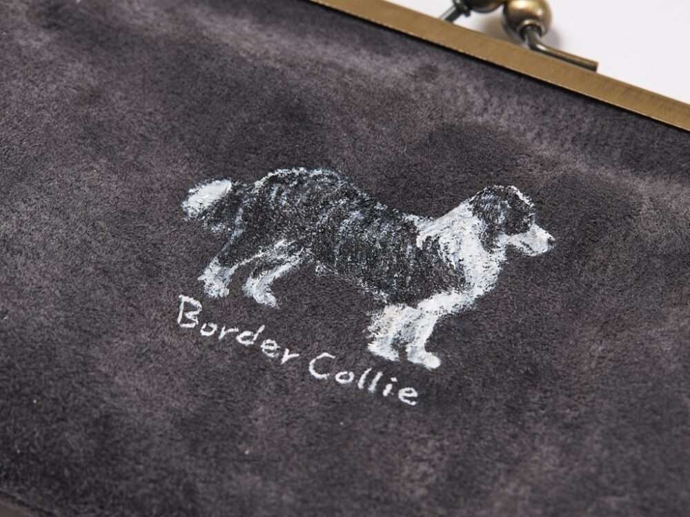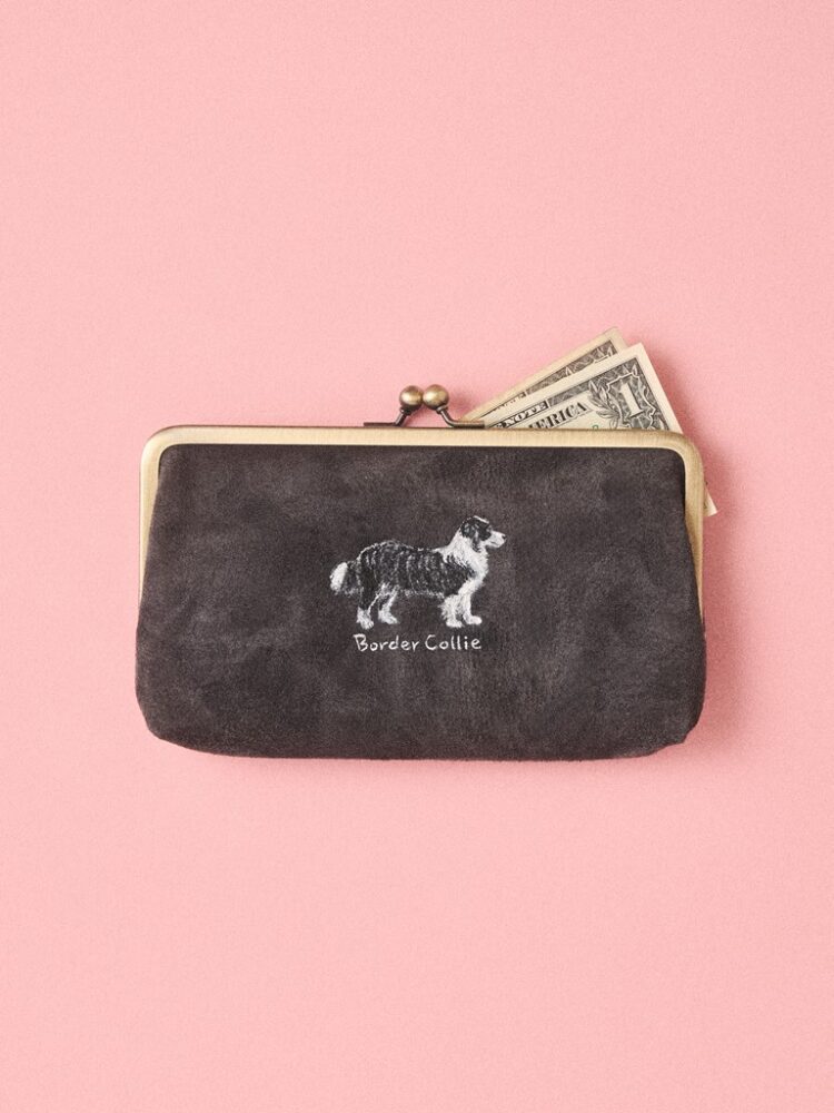 「ブラウンプラウン」との別注第3弾は、ボーダーコリーのペイントが愛らしいがま口長財布。お札と小銭を分けて収納できる2口仕様で、開口部も大きく日々の支払いもスムーズ。長方形のフォルムは財布としてはもちろん、ペンケースや小物入れとしても活躍間違いなし。クラシックな口金デザインと確かな実用性を兼ね備えた、大人の毎日にちょうどいいアイテムです。