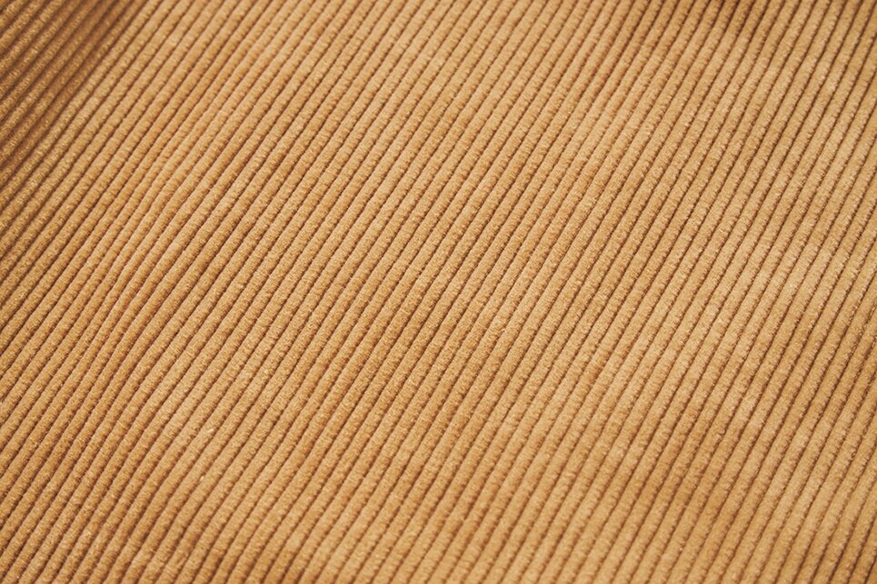 ジャパニーズアイビーの流行がひと段落した70年代に生まれたヘビーデューティアイビーは、文字通り由緒正しきアイビールックを軸に、アウトドアやスポーツを出自とするヘビーデューティ(=頑丈な)なアイテムを組み合わせたスタイル。その定番のボトムスに挙げられるのがコーデュロイパンツだ。シルエットやディテールは、上のデニムトラウザーズと同様。素材は9W(ウェル、1インチの幅に9つの畝があるの意)のコーデュロイを採用。9Wは中畝に分類され、光沢や存在感が強すぎないことからコーディネイトに取り入れやすいのが特徴だ。デニムと同じく国内工場で縫製されており、毛羽立たせることで温かみのある表情に仕上げている。2万2000円