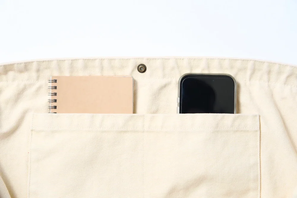 参考にしたヴィンテージのニュースペーパ ーバッグに付属していたサイドポケットを踏襲しており、ディテールまで思実に再現。17.5×26cmのサイドポケットは、ペットボトルや折りたたみ傘などの収納に最 適。マチ付きで見た目以上の収納力を備えています。