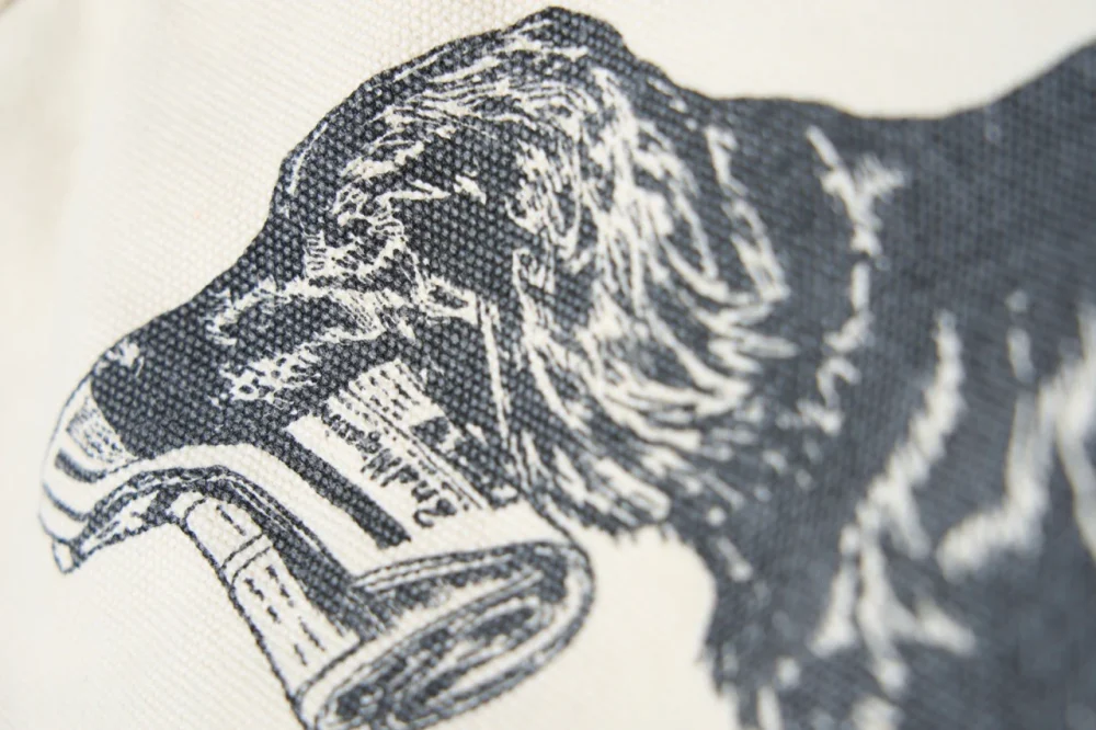 このアイテムのためだけに描き下ろされた特別なイラストを使用。確かな描写力と繊細なタッチで、新聞をくわえたアイリッシュセッターの姿を丁寧に描き出しています。くわえた新聞には「2nd Magazine」の文字がさりげなく入り、細部にまで徹底したこだわりが感じられる仕上がりです。