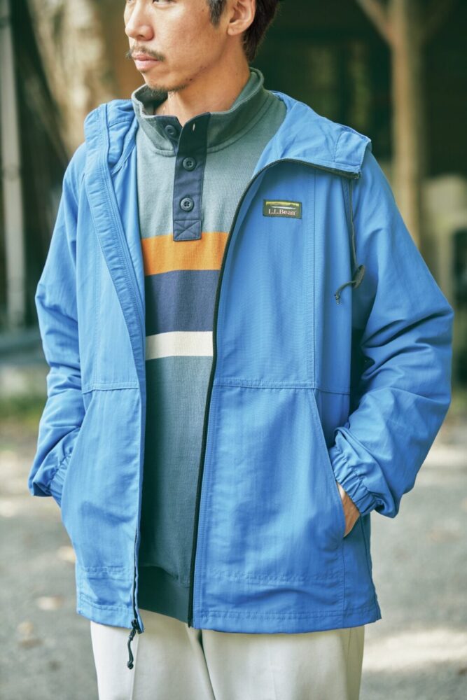 上/ 1984年から続くロングセラー[マウンテン・クラシック・アノラック]。今季は誕生当初に存在したソリッドカラーをベースにしたモデルが加わった。アノラックパーカ1万2100円、シャツ9900円 下/ [マウンテン・クラシック・フルジップ・ジャケット]からも同様にソリッドカラーが登場。フルジップパーカ1万4300円、インナー1万5400円/すべてエル・エル・ビーン(エル・エル・ビーン カスタマーサービスセンターTEL0422-79-9131)