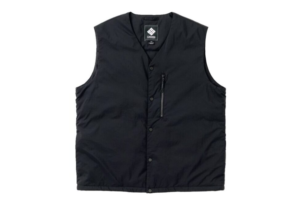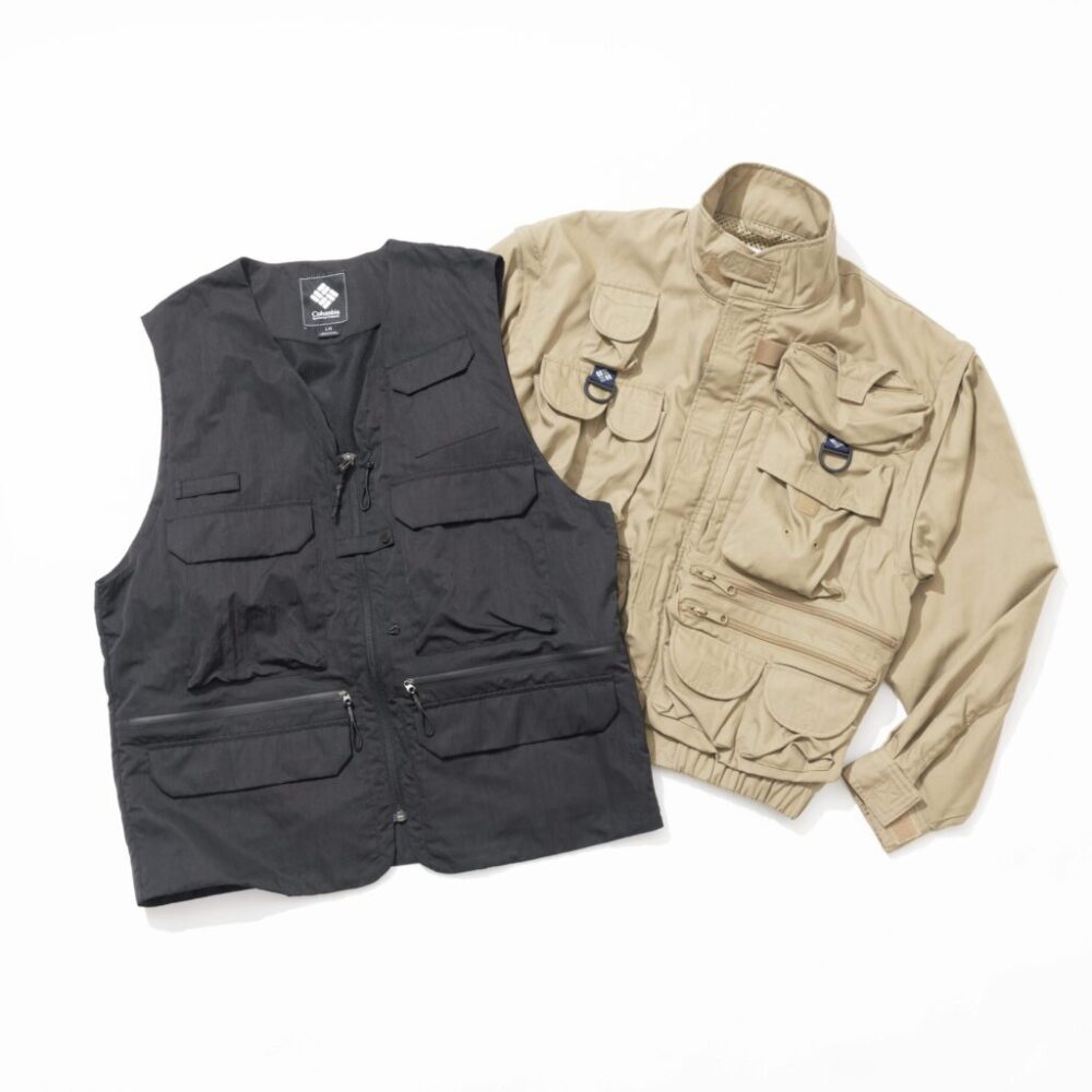 「コロンビアは1938年創業で、最初のオリジナルアイテムは、創業者の娘が釣りが趣味の旦那のために手縫いで作ったフィッシングベストでした。それがブランドのルーツであり、ブラックレーベルでもその伝統を継承・アップデートする形でベストを出しています。アーカイブでは、袖が着脱可能なコンバーチブル仕様になっていますが、都会での着用を想定し、ジャケットとベストの2型に分けてデザイン。本来のフィッシングベストは水に入る前提で着丈が短いですが、丈を長く設定することでコーディネイトの幅を広げています。
