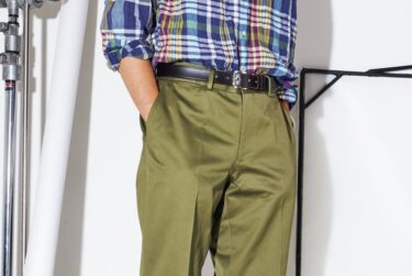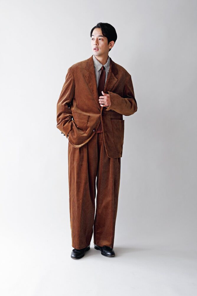 「スタジオニコルソン」らしいゆったりとしたシルエットとテーラリングに、「ビームス プラス」が得意とするプレッピー的なディテールが融合したブレザー。そして、ジャケット同様にリラクシンなシルエットの2プリーツパンツ。生地は、即戦力間違いなしのコーデュロイと尾州のトロピカルウールを採用。ジャケット各11万円、パンツ各5万7200円