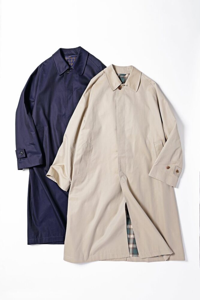 『刑事コロンボ』を彷彿とさせるクラシックなコートを現代的に解釈。ひとりの職人が最初から最後まで1着ずつ丁寧に縫い上げる。アイビー調の裏地も嬉しいポイント。各14万3000円