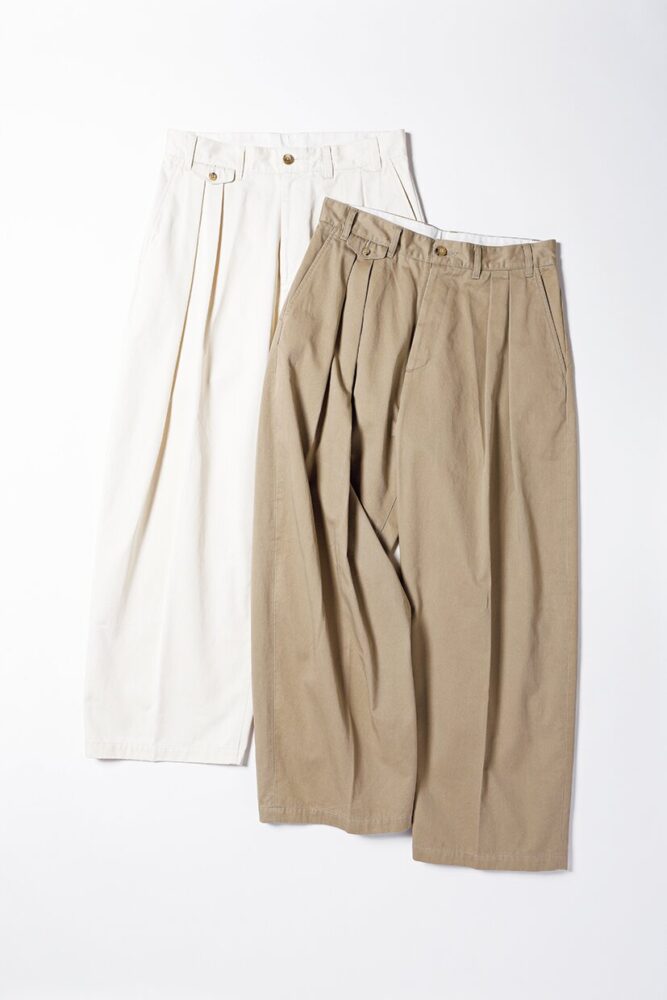 [アルヴィー]は、深めの2プリーツと、ボタンフラップ付きのウォッチポケットを備えた『アニーホール』のスタイルだ。日本製の高密度コットンツイルは、タンとクリームの2色。上述しているセットアップの組下と同型。各4万7300円