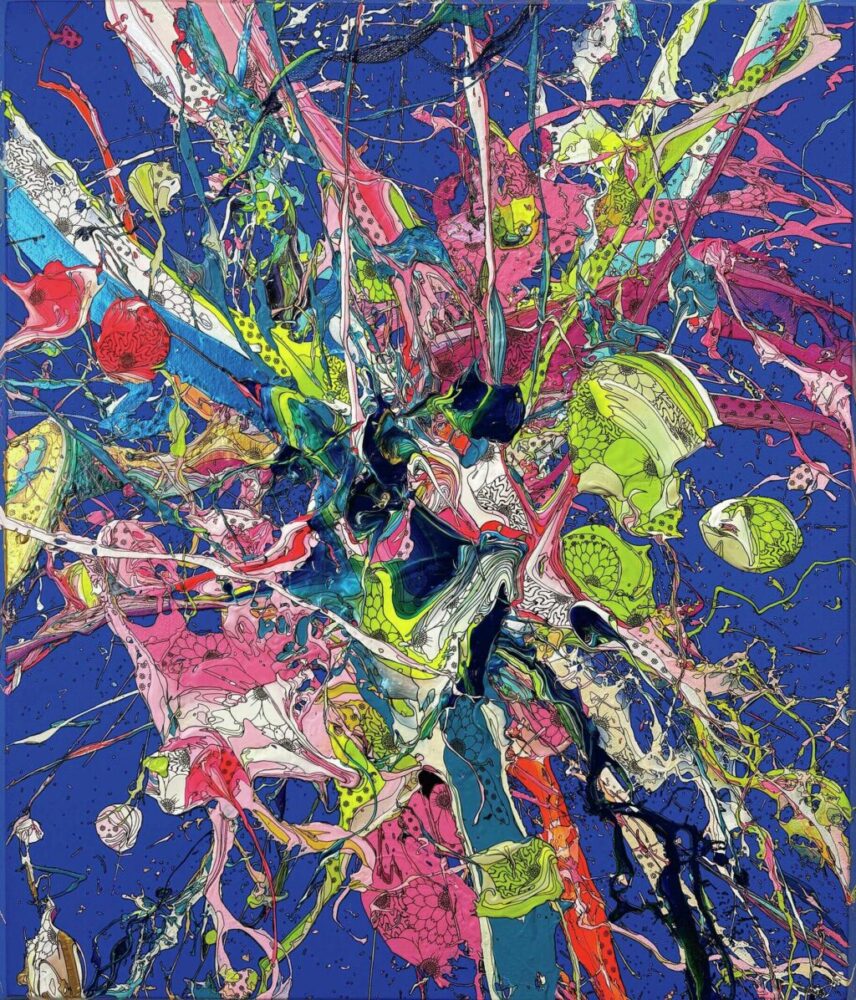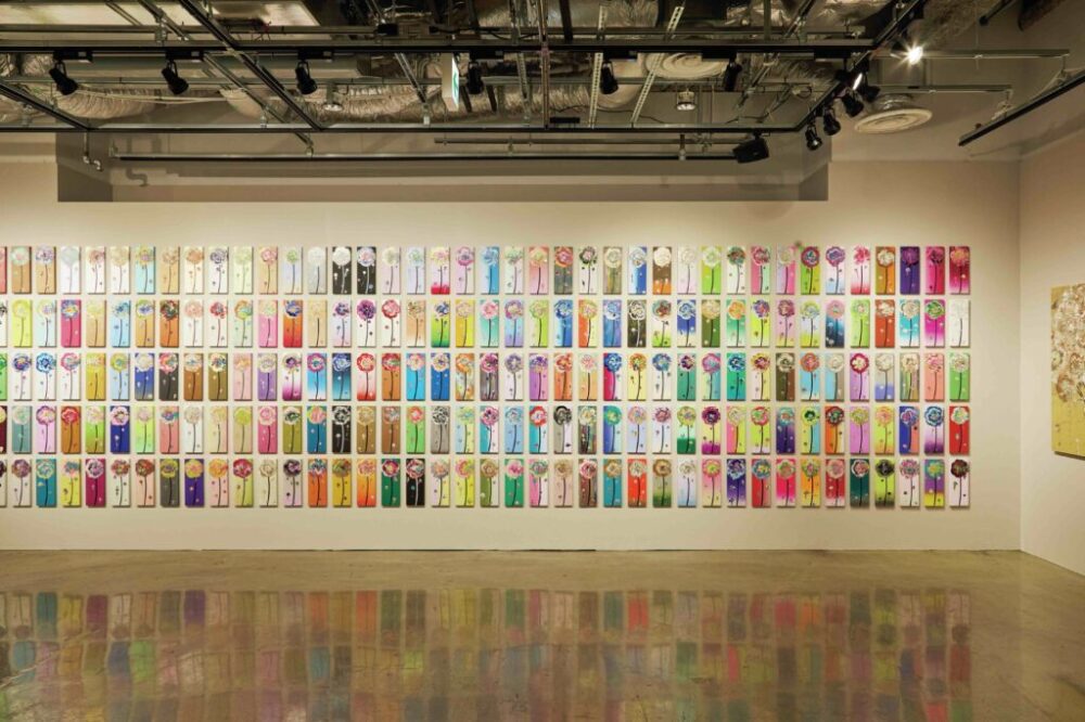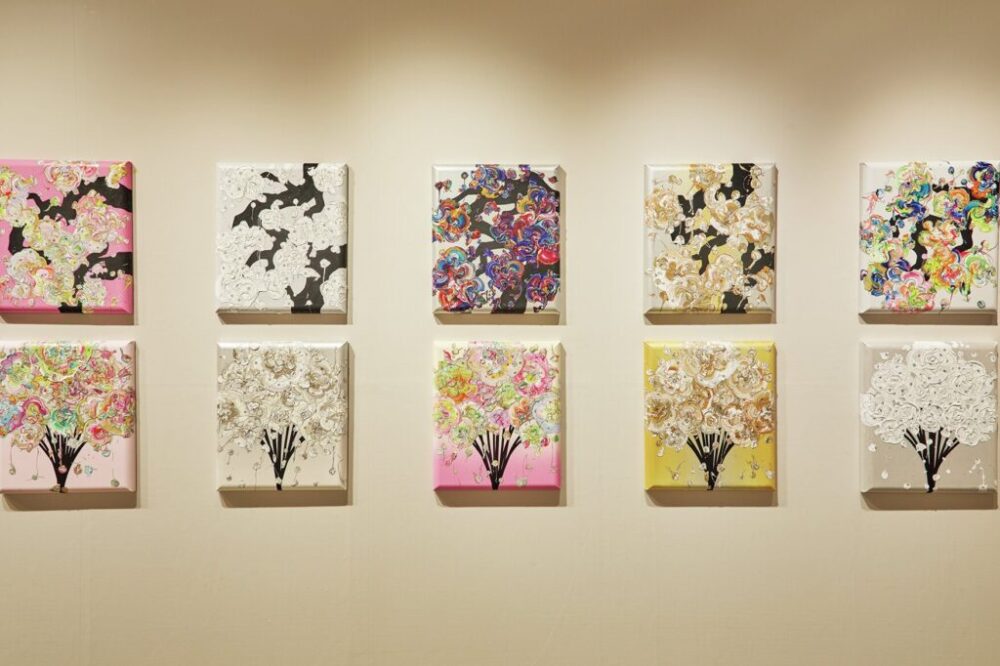 右も左もわからなかったので、とにかく動きました。デザイナー時代の貯金が少しあったので、出展料を払う公募展に参加したり、「デザインフェスタ」に出たり、カフェや行きつけの美容室、病院にまでお願いして展示して。最初の一年で35回、その後も平均して年40回くらい展示を続けています。普通は年に2〜3回、そのうち一回個展をやれば十分という世界なので、かなり異例ですよね。でも、いい絵を描いていても出会えなければ存在しないのと同じ。だからとにかく数を重ねて、人と出会うチャンスを増やしました。これは「一次流通と二次流通」に対する考え方が背景にあります。作品は、最初に作家から直接買われる一次流通と、オークションなどで転売される二次流通がある。短期的には作品のレアリティが重視されますが、僕は長い目で見れば一次流通での認知度を積み上げることの方が大事だと考えました。そのためには数を描き、多くの人の目に触れることが必要なんです。