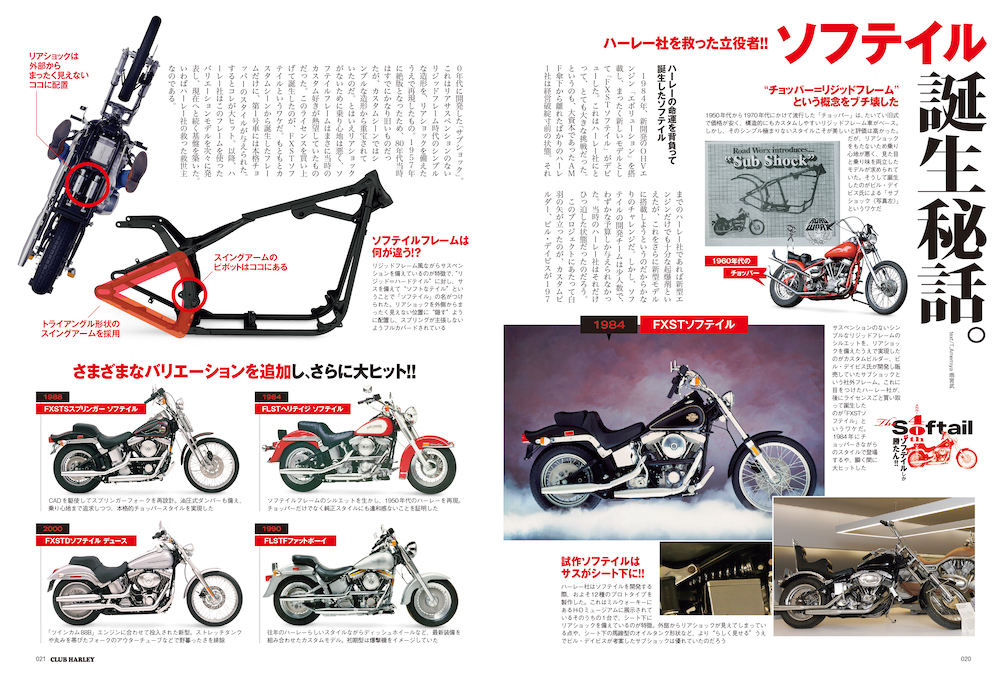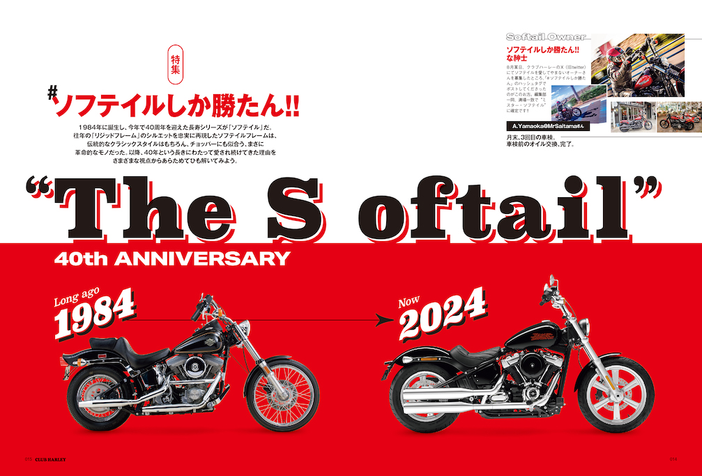 そこで、ソフテイルのさらなる魅力に迫るため、歴史やカスタム、実際のオーナーの声など、さまざまな視点から魅力をひも解く巻頭特集。ソフテイルが気になる人もそうでない人も必見!!