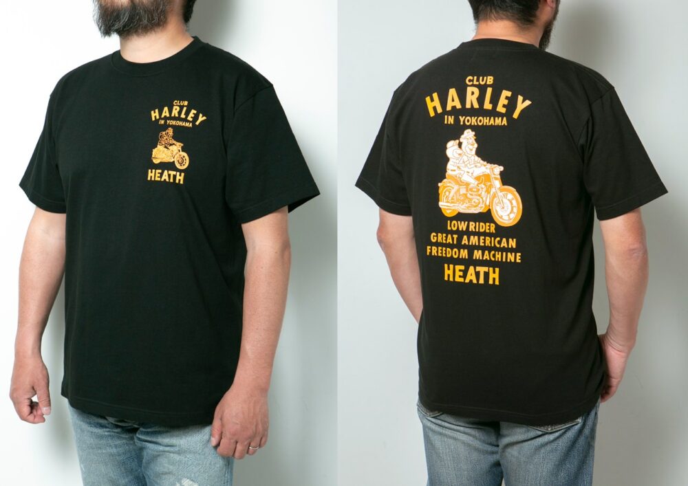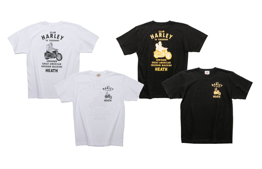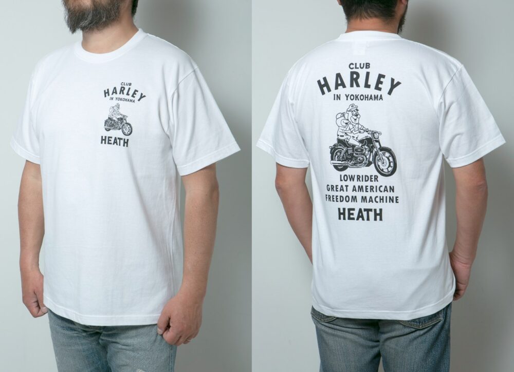 HEATH.のプロダクトはハーレー乗りとも親和性のあるアメリカンカジュアルがベースになっていますが、中でもモーターカルチャーの香りがするデザインは、読者諸兄も好きな人が多いのではないでしょうか? そこで今回HEATH.とクラブハーレーが初のコラボ! クラブハーレーのTシャツ史上最もポップといっても過言ではないキュートなデザインに仕上げてもらいました。