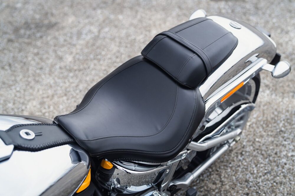 ハーレーの伝統的サイズといえる径16インチの前後ホイールには、当時珍しかったディッシュホイールを採用。さらに初期モデルは戦闘機をモチーフに、シルバー塗装されたフレームと外装、エンジンまわりはイエローのストライプを加えるなど、“前後16インチホイールにフルスカートフェンダー”というハーレー伝統のシルエットを継承しつつも、迫力あるカスタムモデルに仕上げて世界中のファンを魅了した。これが現在まで続くロングセラーモデルとなったのだ。