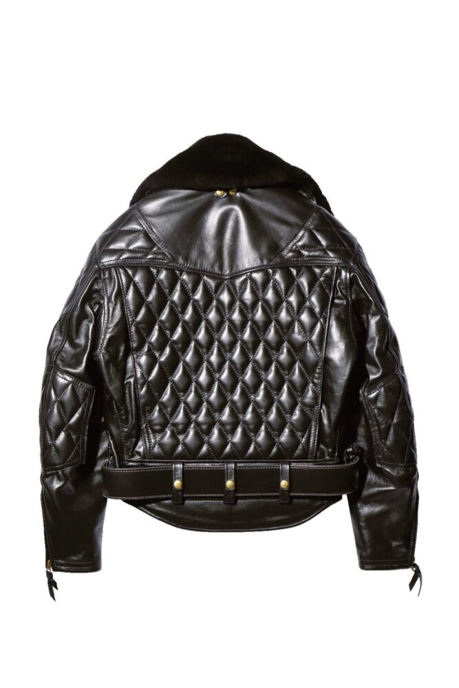 肩・肘・背中のパデッド、着脱式ボア、ベルトの装備を加えた、フルコースカスタムのコロンビア。重厚感の強い唯一無二のスタイルにアップデートされている。