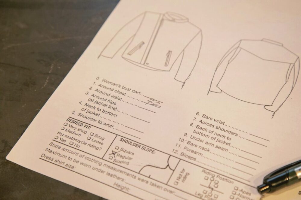 ラングリッツでは基本設定のサイズオーダーに加え、オプションでパデッドや着脱式ボア、ポケットなどの装備の変更が可能。自分だけの一着を造ることができる。
