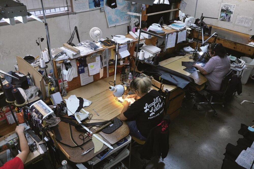 ラングリッツ・レザーズのモノ造りは、創業者のスピリッツを頑なに守りながら、創業時から変わらずポートランドの自社工場のみで生産し続けている。サイズオーダーやカスタムオーダーなど、1着1着がそれぞれ異なるため、同じモデルであっても微細な変化を具現化する技術が必要であり、ラングリッツ社が誇る熟練職人たちによって丁寧に生産されている。