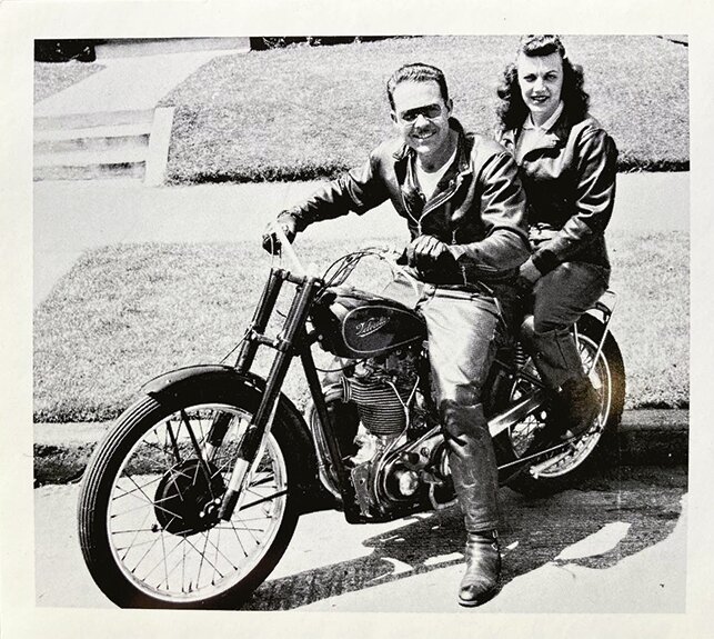 1948年、写真のユーザーのデザインオーダーによって製作されたアビエイタースタイル。フロントの8ボタンが最大の特徴で、フロントの合わせが大きいため走行中の防風性が高い仕様となっている。