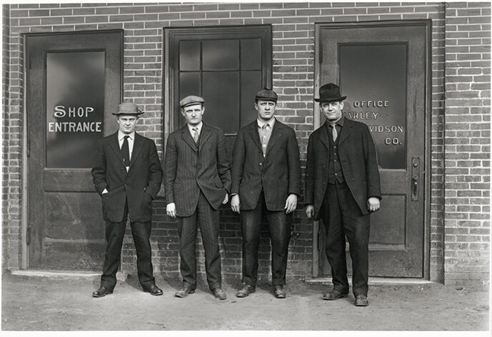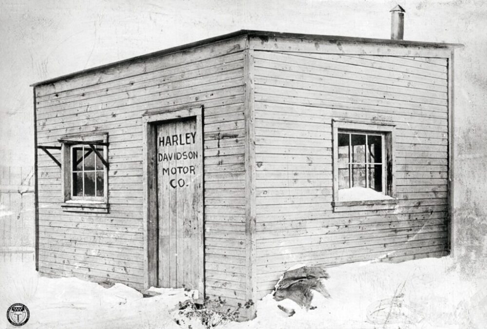裏庭にあった3m×4.5mの小さな小屋で1号機は製造された。現在まで続く巨大メーカーは、家が隣同士だったハーレーとダビッドソン兄弟の、わずか4人の若者たちによって創立された。