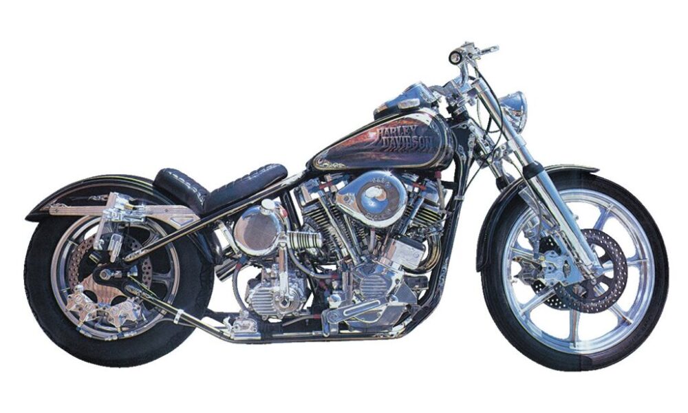 ハーレーに改造を施し、鈍重な純正パーツを取り払い、“よりシンプルに軽くする”チョッパーの手法は、そもそも“当時のアウトローバイカーたちが警察車両から逃れるため、渋滞の中をスリ抜けしやすいよう改造を施したもの”だったのだが、それが徐々に個性的な装飾性を高め、多くの人がイメージする姿に変化していったことは想像に難しくない。