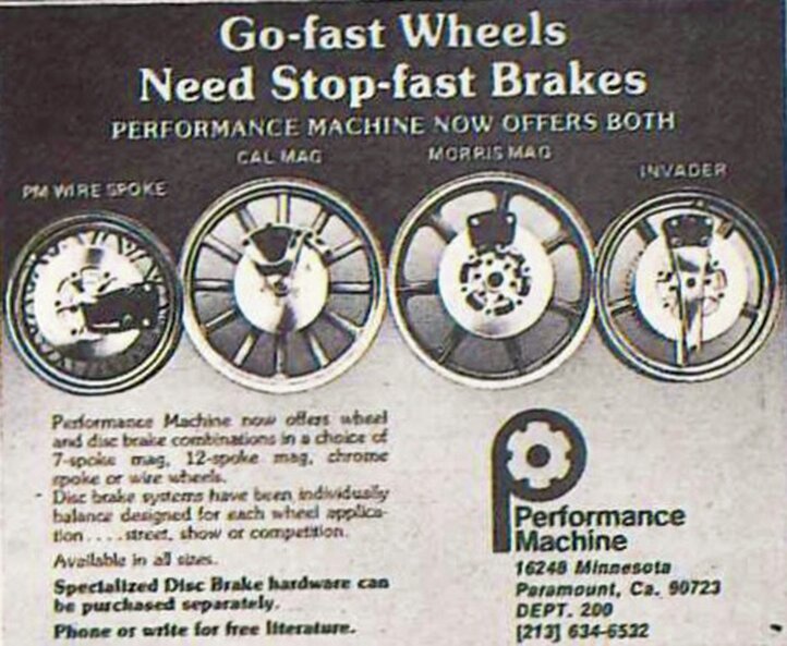当時はホンダが市販車で初めてディスクブレーキを採用した「CB750four」を発売したころで、ハーレーユーザーの間では従来のドラムブレーキからディスクへと改造するカスタムが流行。そこで独自のブレーキシステムを開発し始めたことが現在のPMの礎となっている。