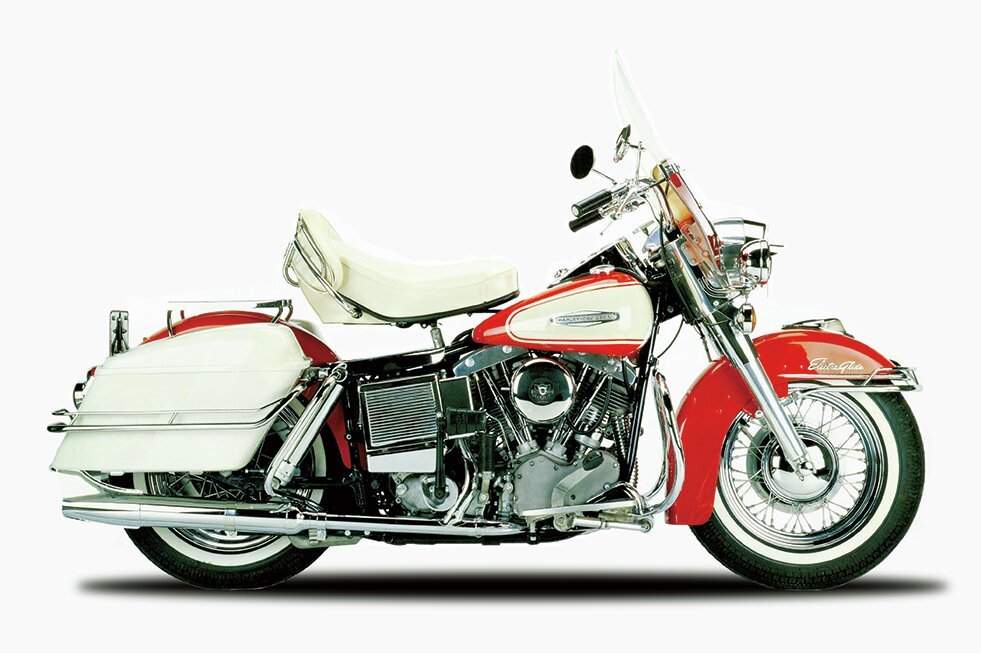 それまでのリジッドフレームに代わってリアにもサスを備えた「FLハイドラグライド」が登場。操縦性が飛躍的に向上したほか、インディアンの消滅に伴って、ツートーンの豪華なカラーやホワイトウォールタイヤなどで高級感をアップさせたのだ。